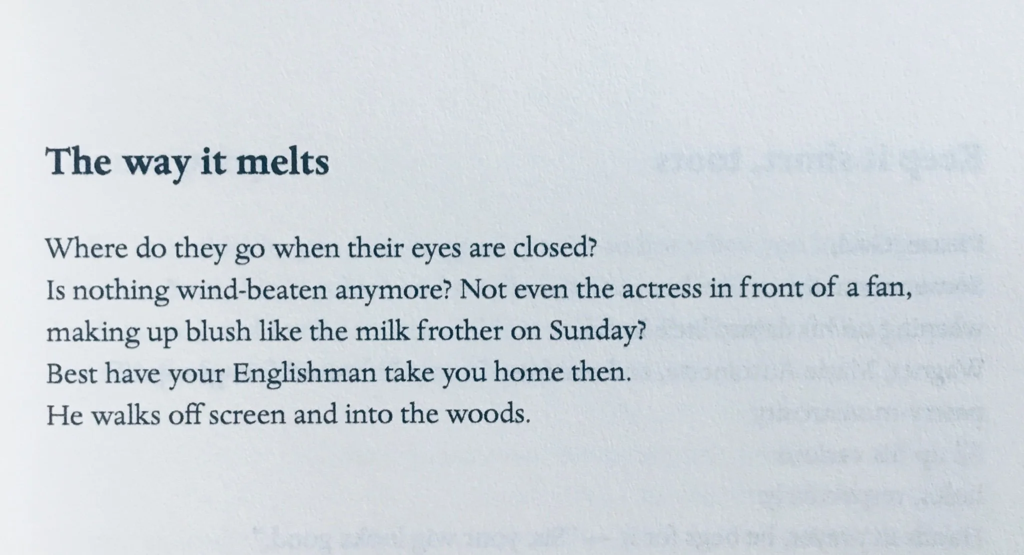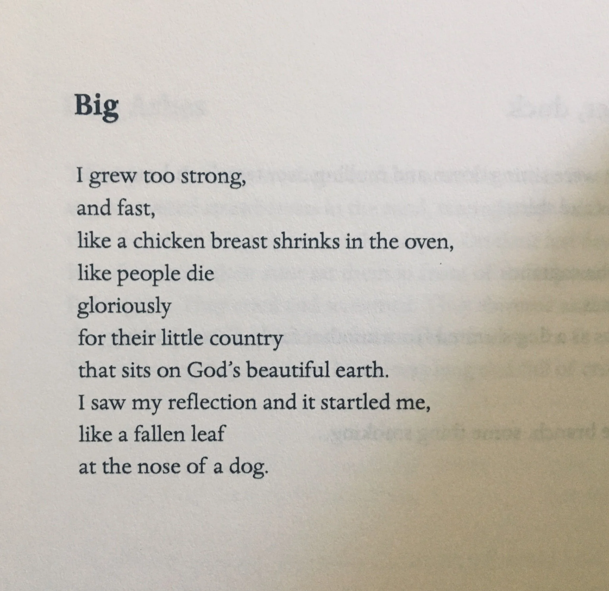 Thank you! Many of these poems I had been working on for years before this specific collection. I allowed myself to write from a more explicitly biographical box of references. I was drawn to faux-archaic language, where contractions, rhyming, and bouncing rhythms can create a nursery rhyme effect to carry through these darker, often sexual, themes. I also tried to mimic the format and tone of menus and the speech patterns/cadences of waiters, if only just to get my notes on the page or outline a poem to start with. I’m a firm believer in killing your darlings, pretty much right off the bat, but with this collection I allowed myself to leave some of those in here and there. It was a little indulgent, which felt appropriate.