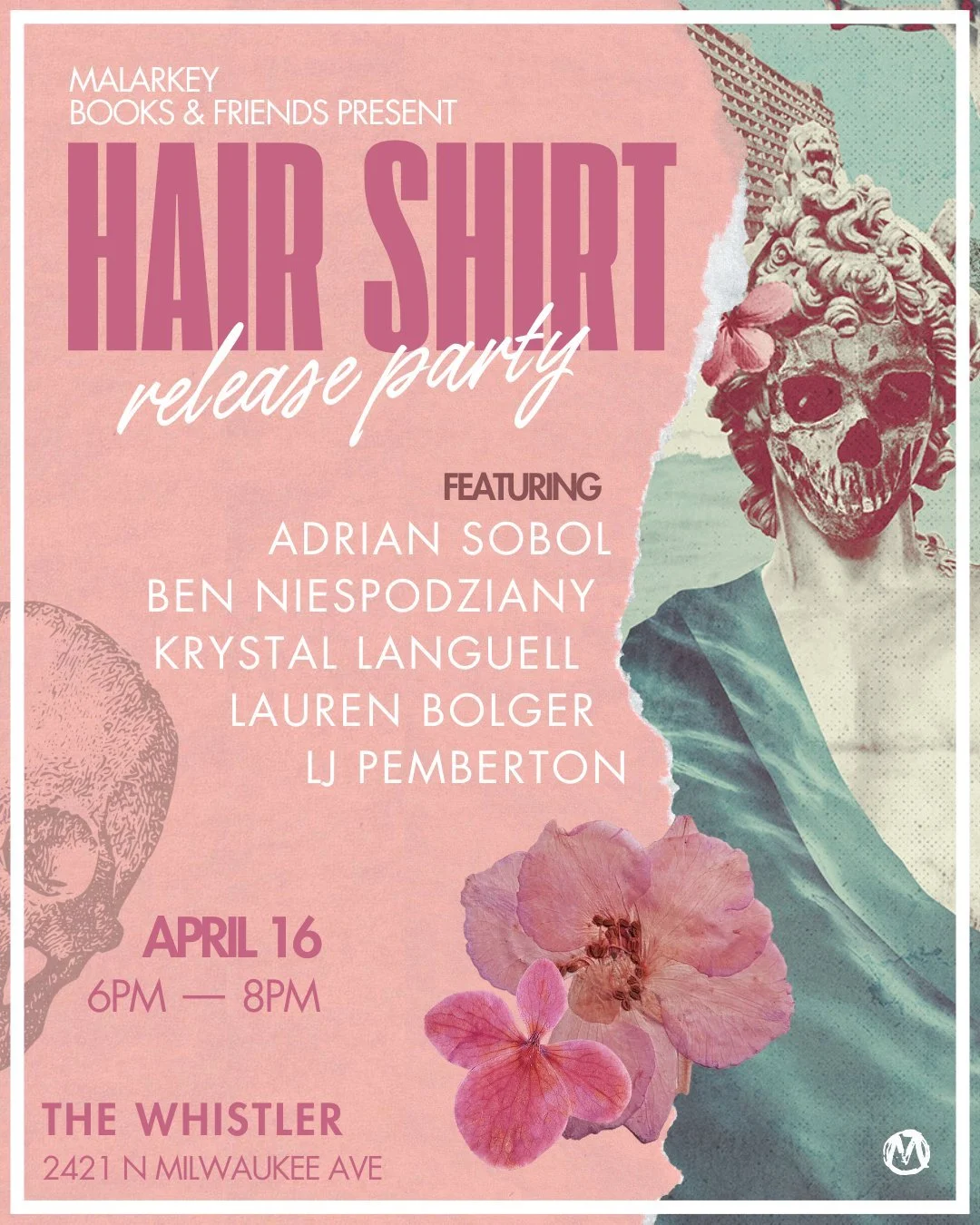 To put it simply: Adrian Sobol rules. His newest book of poems, HAIR SHIRT, rules. These poems from the Chicago-based poet are heart-felt, humorous, strange, musical, and often theatrical pieces of art. All hail HAIR SHIRT. It is a follow-up to his debut, The Life of the Party is Harder to Find Until You’re the Last One Around (2020), which I also adored. Both are out with Malarkey Books.