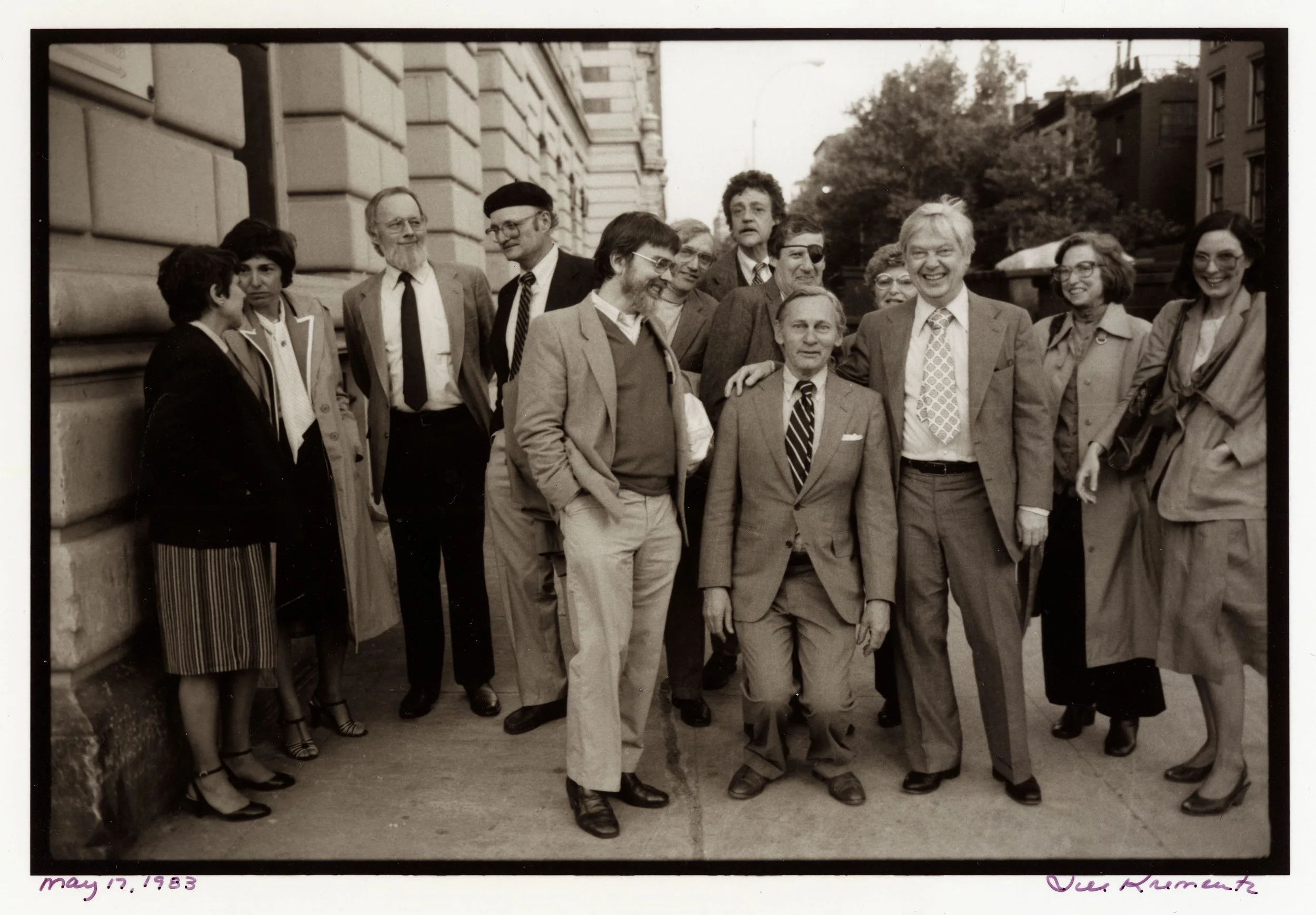 I’d point to this photo by Jill Krementz The Postmodernists Dinner, which features some of my favorites. The two most important to me who appear in that photo, though, are Kurt Vonnegut and Donald Barthelme.