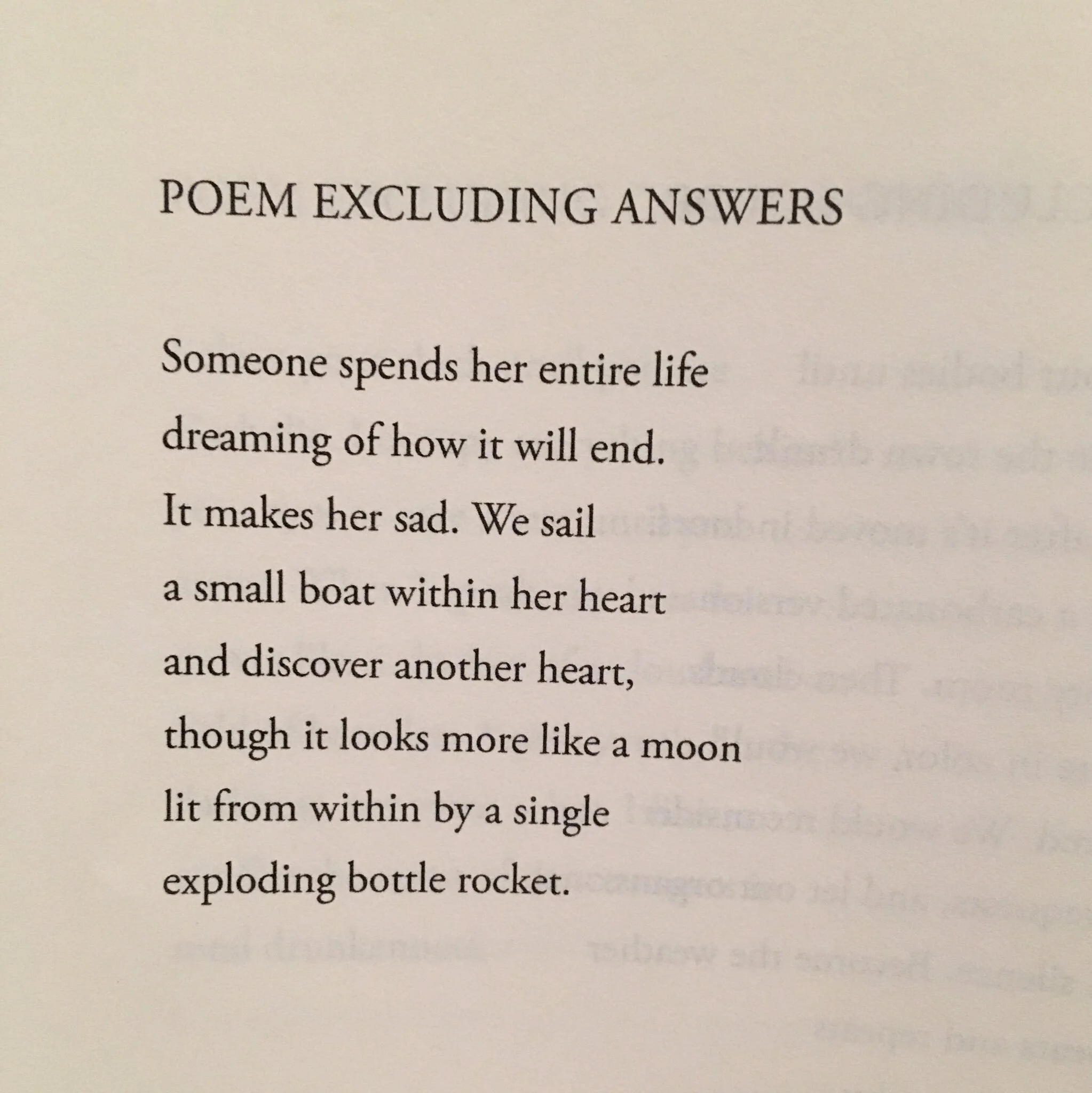 I love seeing poems in a collection speaking and interacting with one another. At what point in the process of the manuscript did you know that each title would be "Poem Excluding..."?